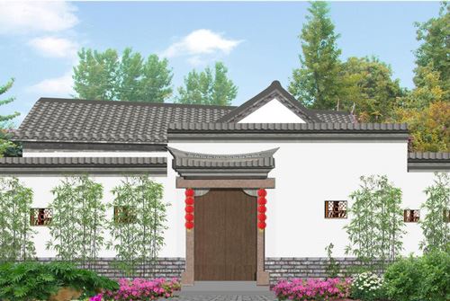 頂將紅瓦改換成黑瓦,圍墻上增加窗洞,用木格柵修飾,提升民居內(nèi)部空間的通透性修繕大門(mén),增加大門(mén)上方門(mén)頭,采用仿古做法。