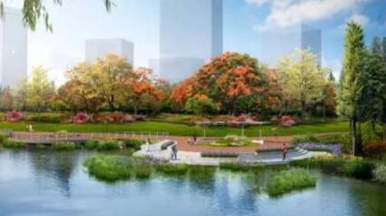 依托現(xiàn)狀地形地貌,打造親水平臺(tái),結(jié)合用地規(guī)劃打造條狀小游園。