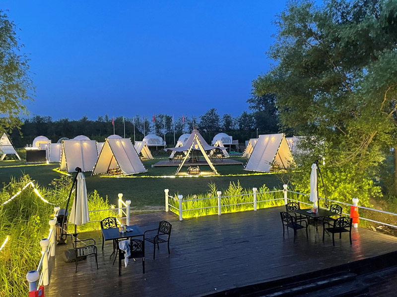此區(qū)塊位于規(guī)劃地塊的東北角濱水區(qū)塊,該區(qū)塊項(xiàng)目設(shè)計(jì)意在配合度假酒店,加載精品化的休閑度假項(xiàng)目,打造精品度假體驗(yàn)。其主要內(nèi)設(shè)項(xiàng)目包括垂釣俱樂(lè)部、房車營(yíng)地、篝火廣場(chǎng)、精品帳篷酒店、帳篷餐廳和露天燒烤園等等