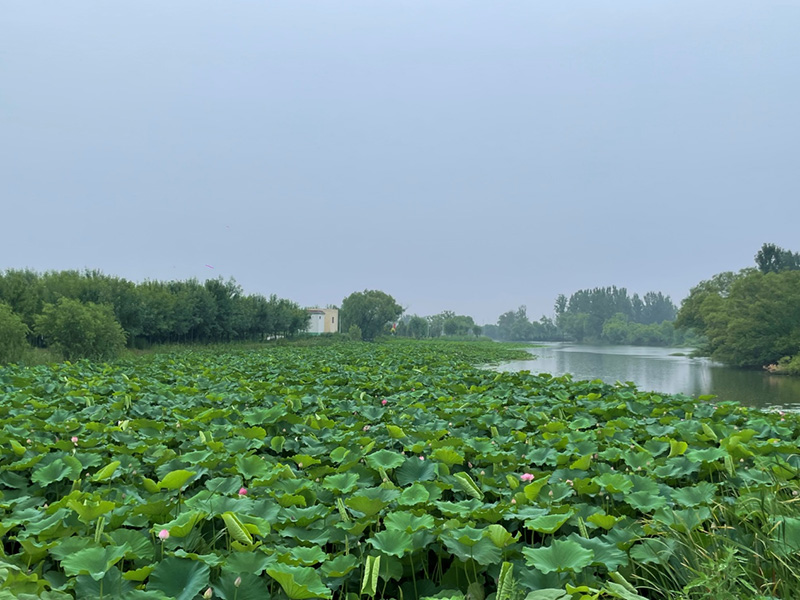 以荷花為主題,堤岸打造木棧道,河岸搭配蘆葦?shù)戎参铮浞职l(fā)揮綠地效益。